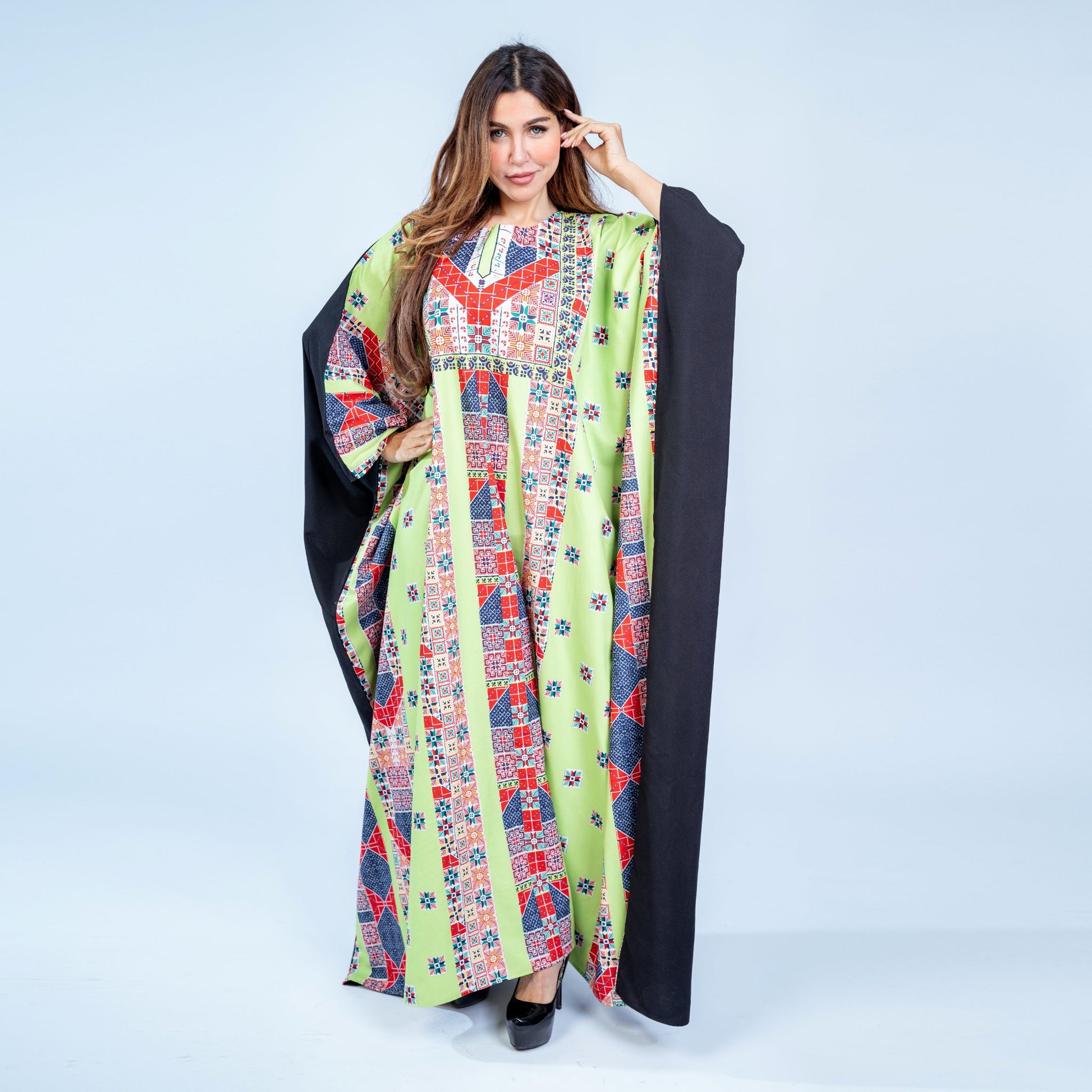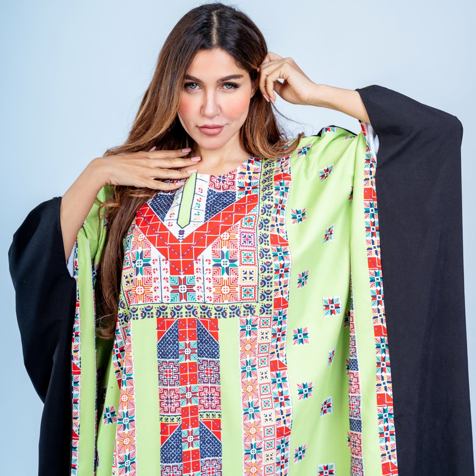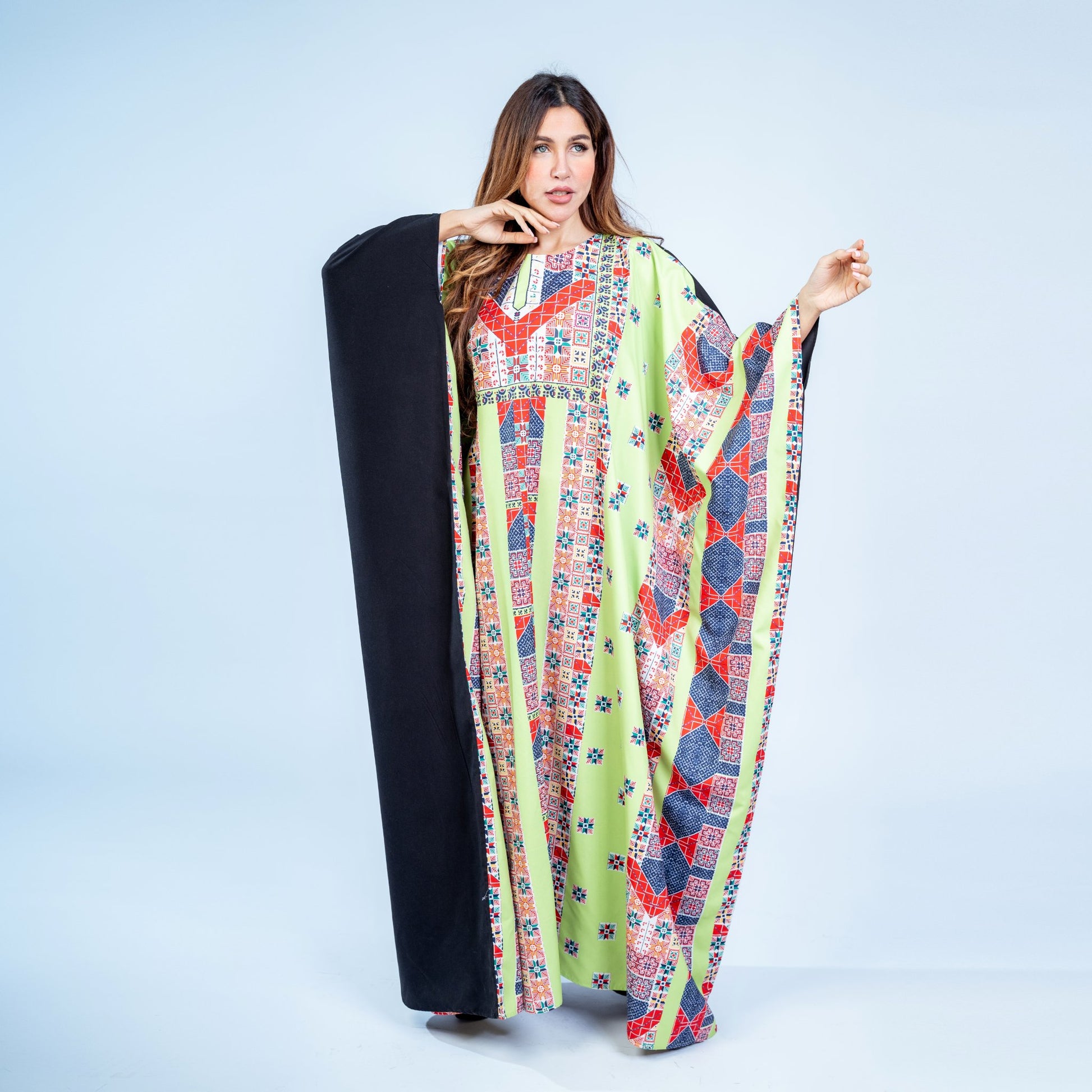 The Desert Jewels kaftan combines luxurious microfabric with versatile free-size styling, offering effortless elegance for any occasion. This lightweight, breathable fabric drapes beautifully while maintaining its shape, ensuring comfort throughout the day. The universal fit accommodates various body types, making it an accessible choice for diverse wardrobes. Perfect for layering or wearing solo, this piece transitions seamlessly from casual gatherings to more formal settings. The microfabric's durability means your kaftan maintains its refined appearance wash after wash, delivering lasting value and timeless style.