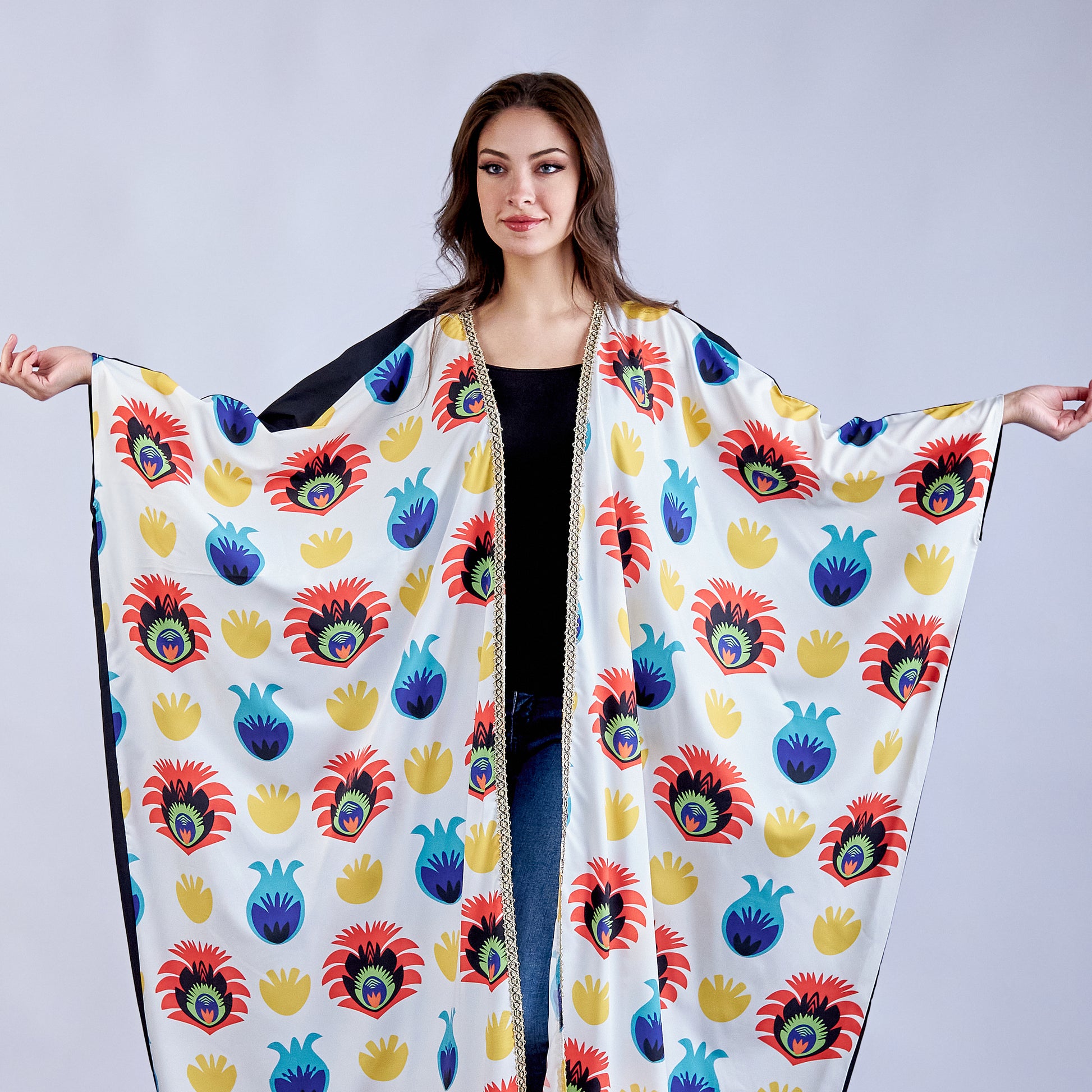 Dreamcatcher Microfiber Open Kaftan Crafted from premium microfiber fabric, this open kaftan delivers exceptional softness and breathability for all-day comfort. The free-size design adapts effortlessly to various body types, offering a relaxed, flowing silhouette that flatters and moves with you. Microfiber's moisture-wicking properties keep you cool and dry, while its durability ensures lasting wear through frequent washing. Perfect for loungewear, beach cover-ups, or casual outings, this versatile piece combines practicality with understated elegance. The open front style provides easy layering options and adjustable coverage to suit your preference.