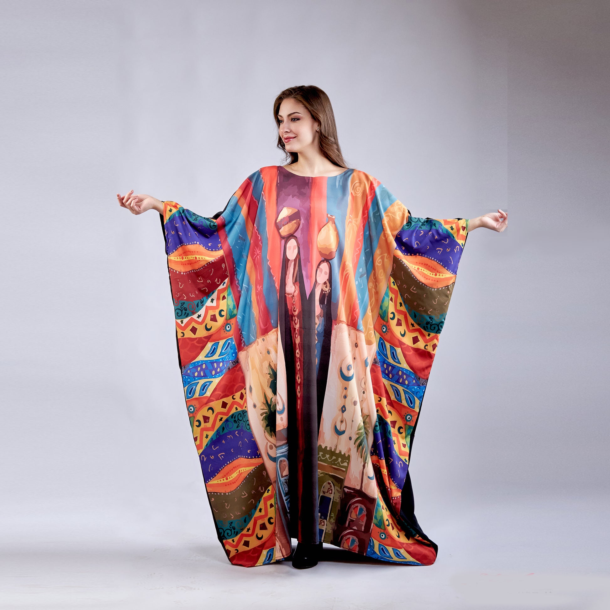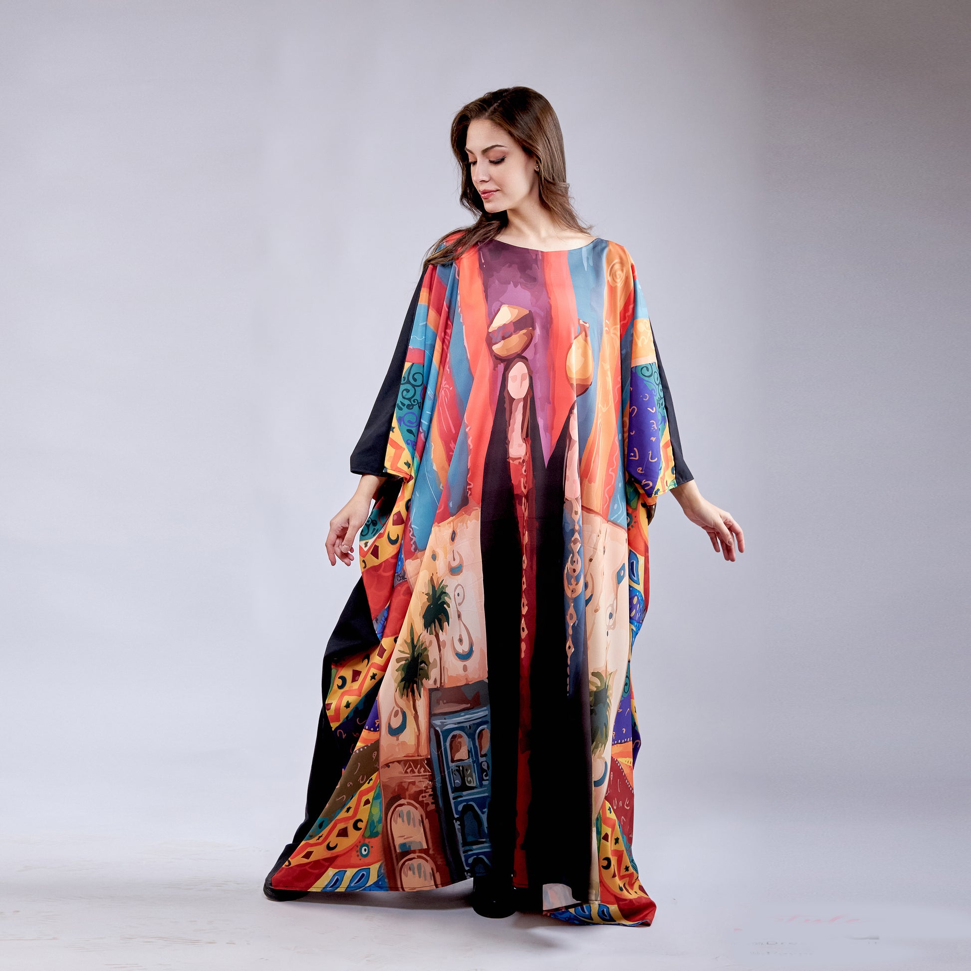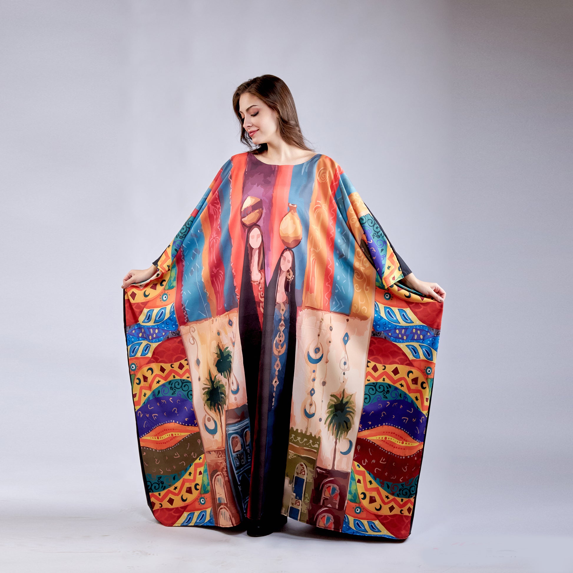 Elevate your wardrobe with the Enchanted Village kaftan, crafted from premium microfiber fabric that delivers exceptional softness and durability. This free-size design adapts effortlessly to your body, providing comfortable coverage and graceful movement throughout your day. The microfiber material resists wrinkles and fading, ensuring your kaftan maintains its pristine appearance wash after wash. Perfect for casual wear, lounging, or layering, this versatile piece combines timeless elegance with modern practicality. Experience the luxury of quality fabric in a universally flattering silhouette.