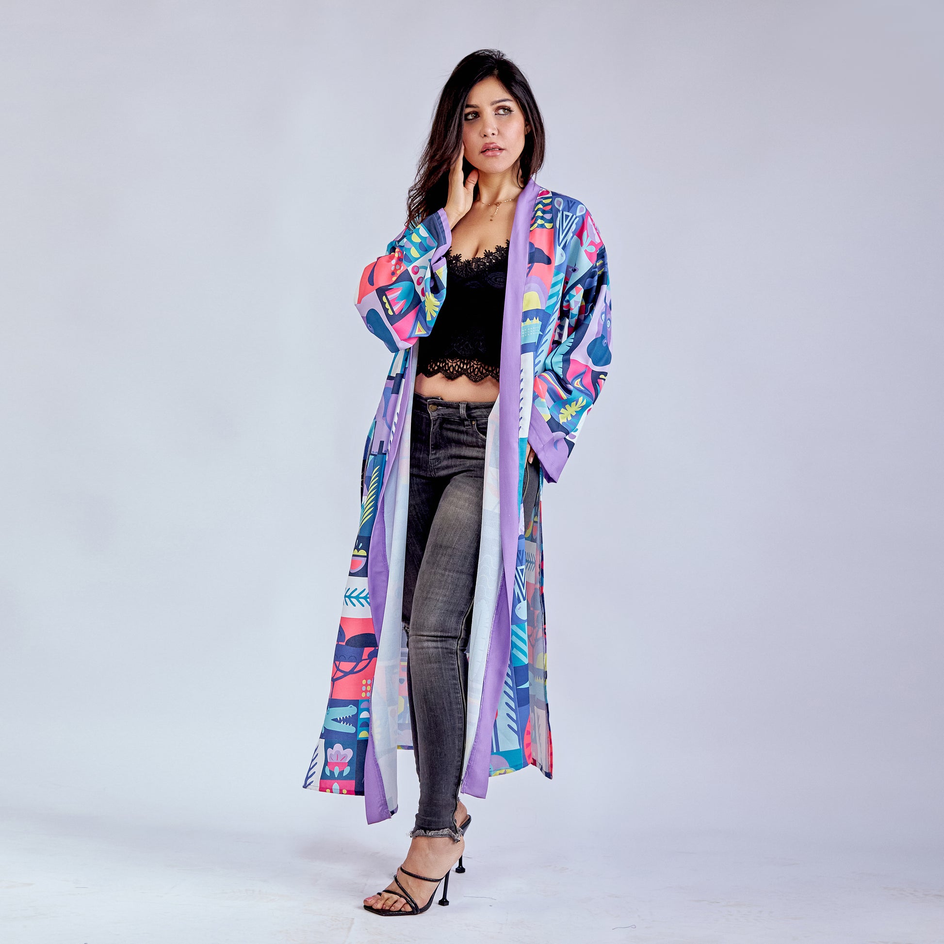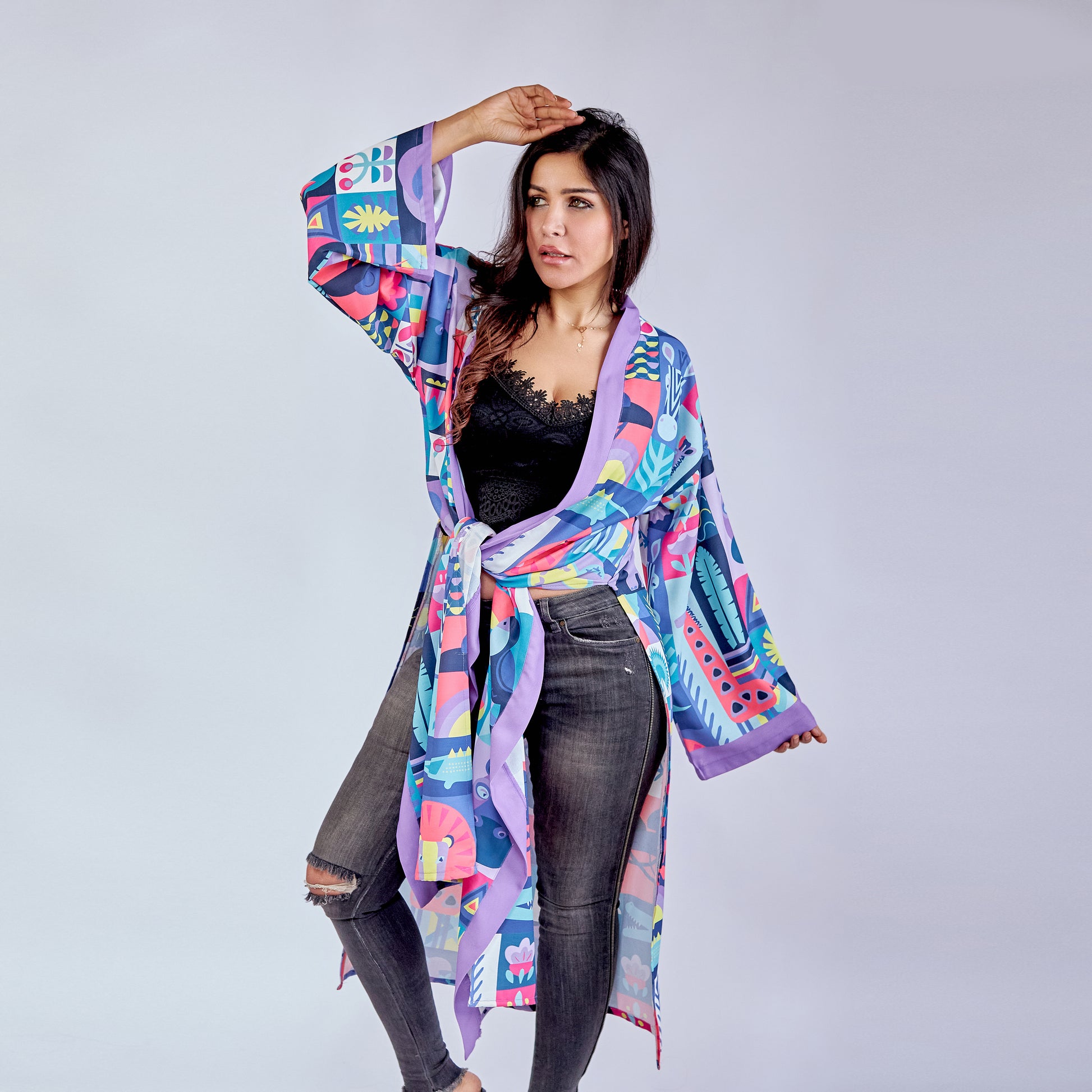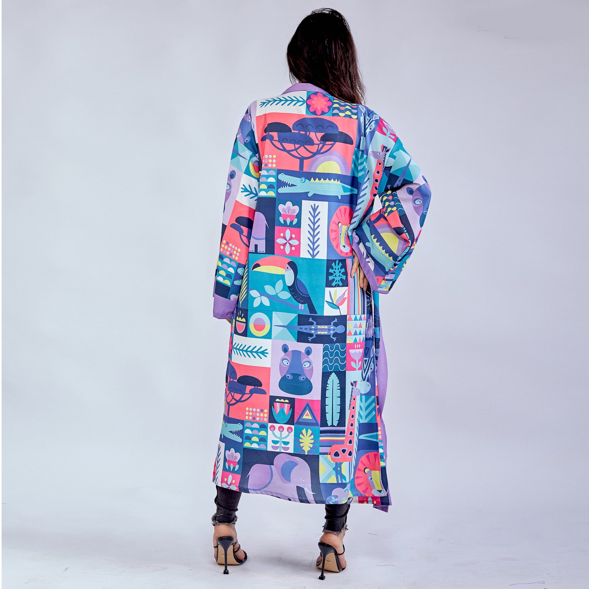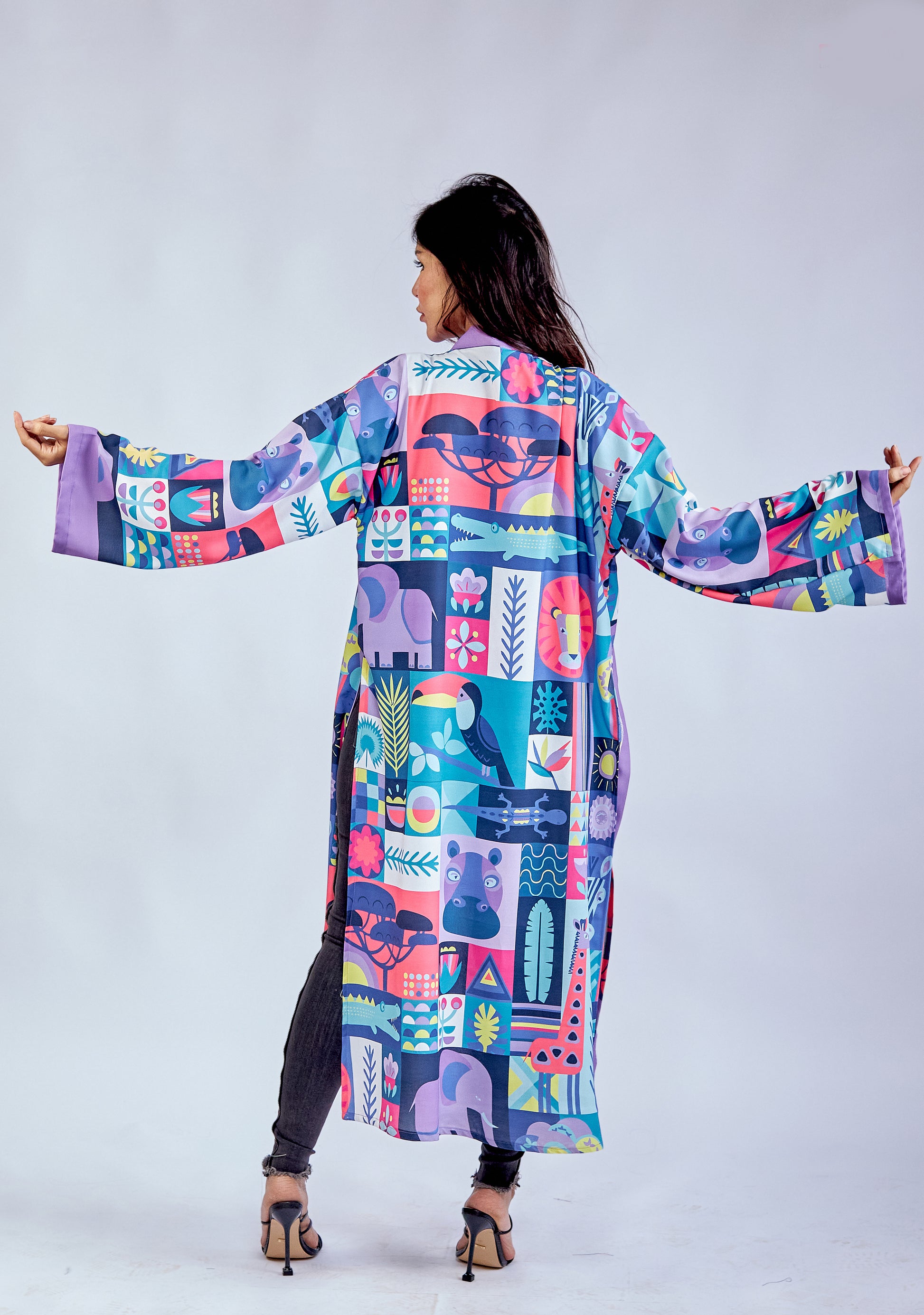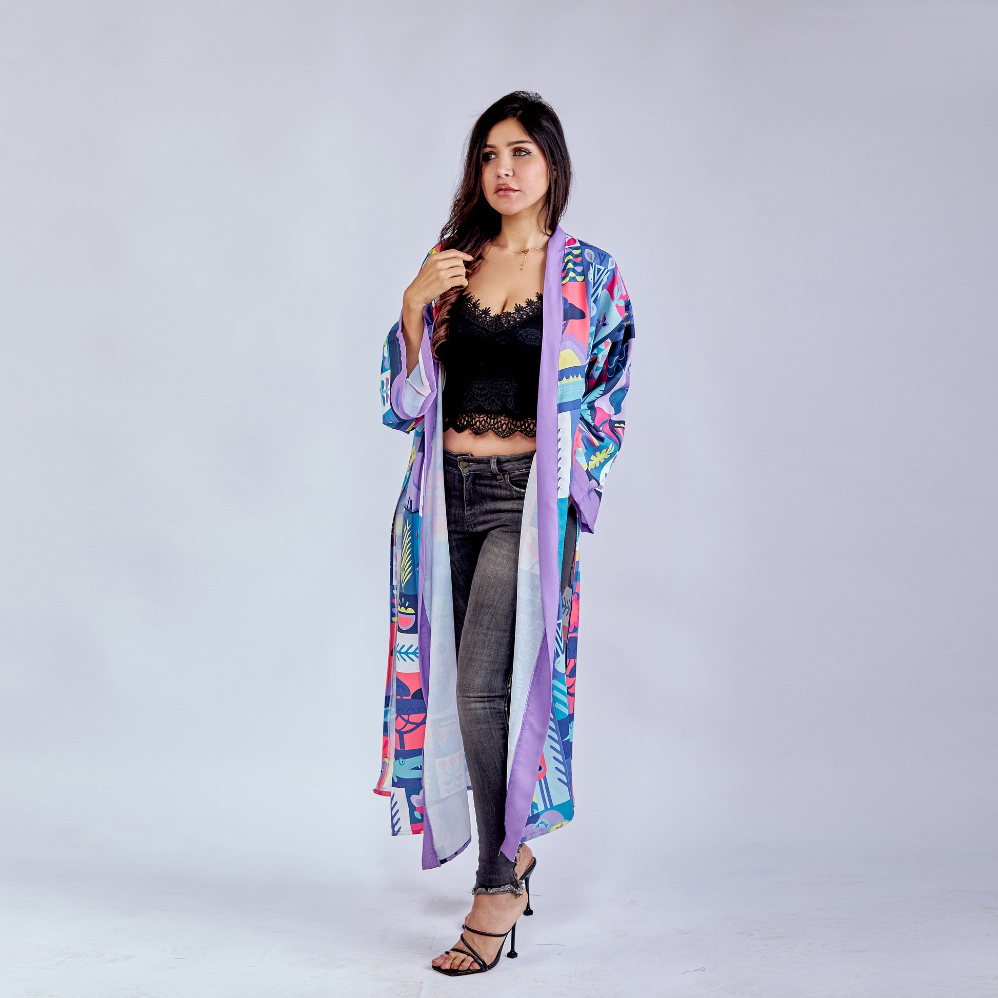 Jungle Jewels Microfiber Cardigan Crafted from premium microfiber fabric, this versatile long cardigan offers exceptional softness and durability for everyday wear. The free-size design ensures a comfortable fit for various body types, making it an effortless layering piece for any wardrobe. Microfiber's moisture-wicking properties keep you comfortable throughout the day, while its wrinkle-resistant nature minimizes maintenance. Perfect for transitional seasons, this cardigan pairs seamlessly with casual or professional outfits. The extended length provides elegant coverage and flattering silhouette. Invest in a reliable staple that combines comfort, practicality, and timeless style.