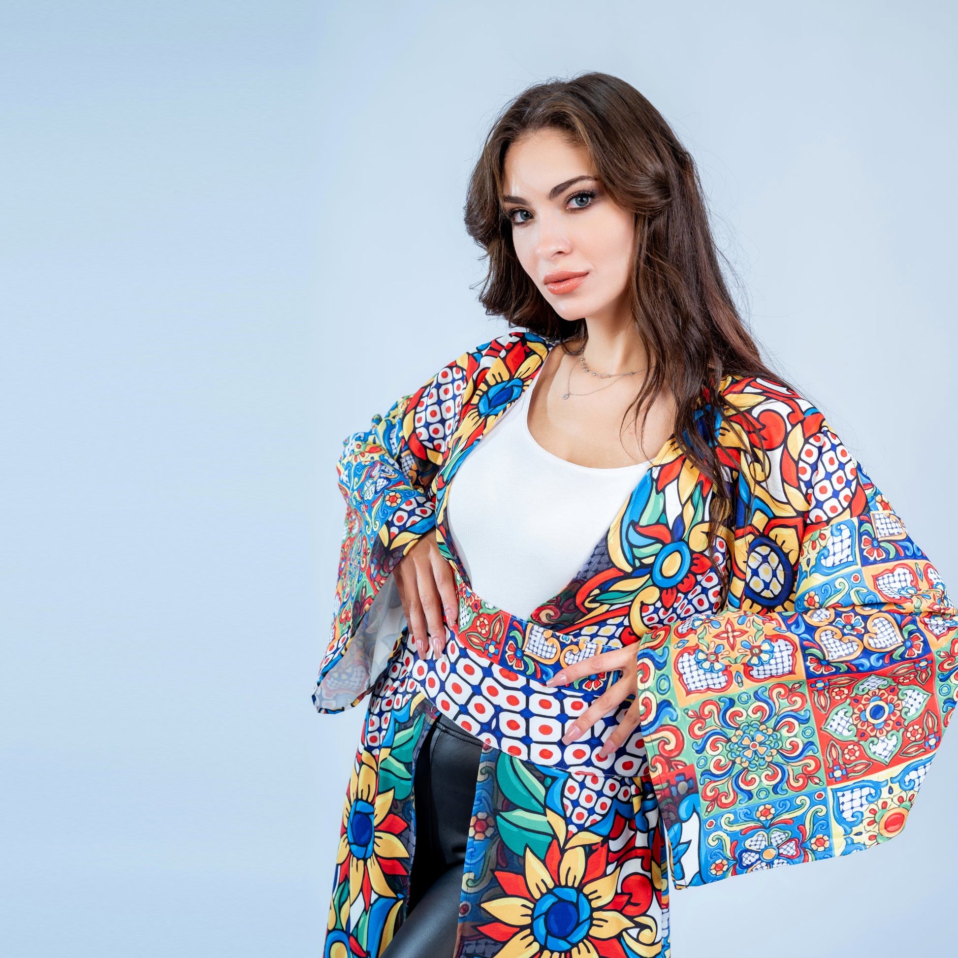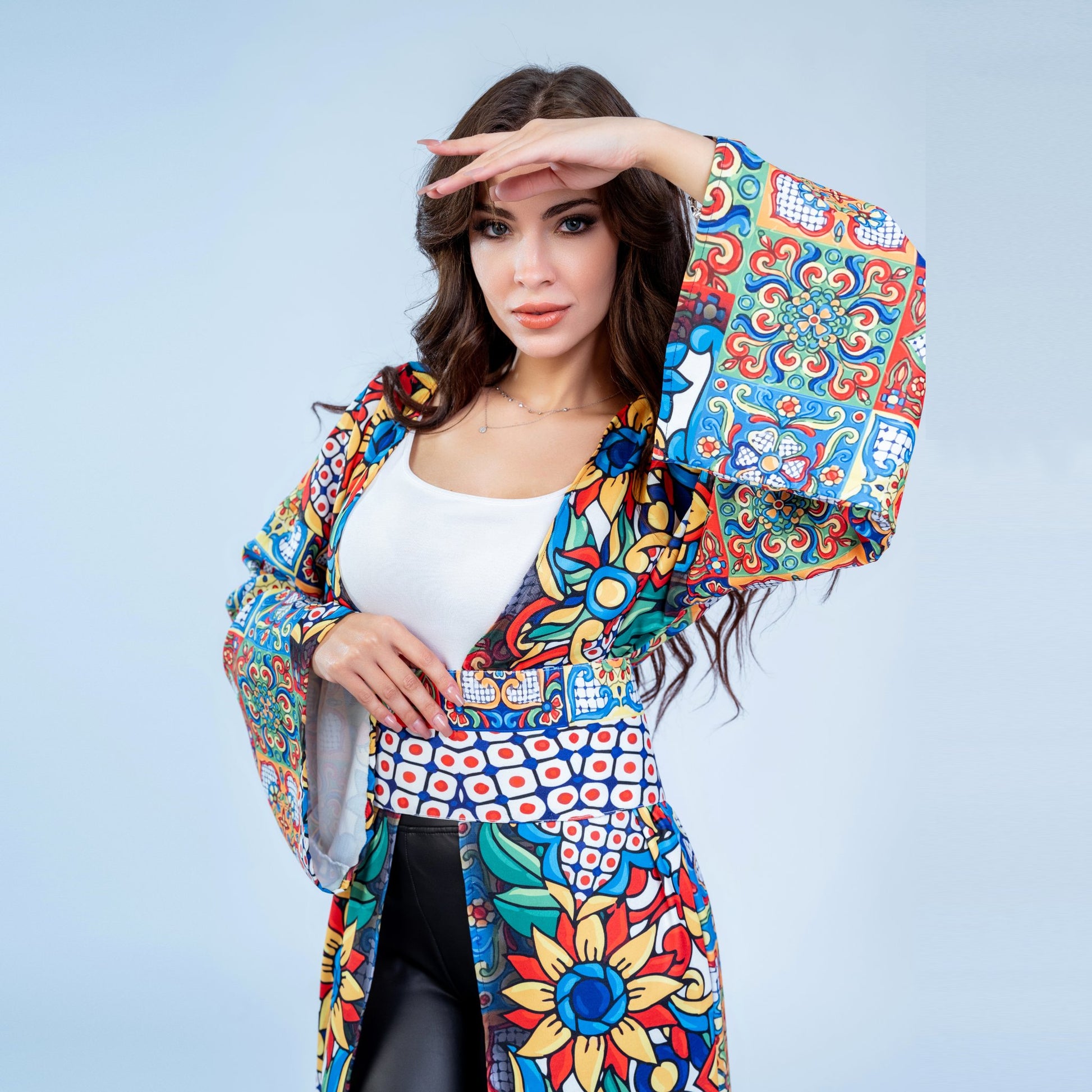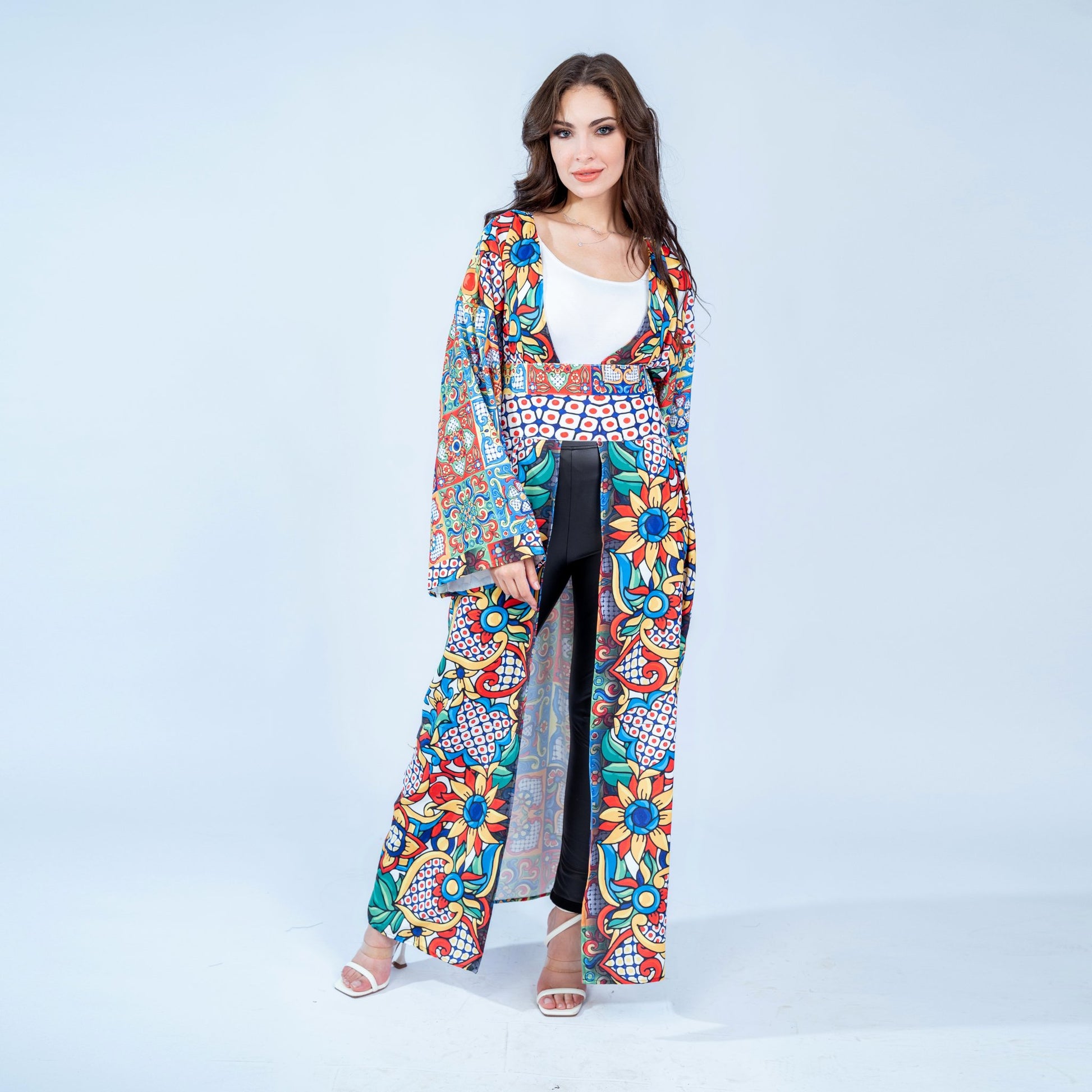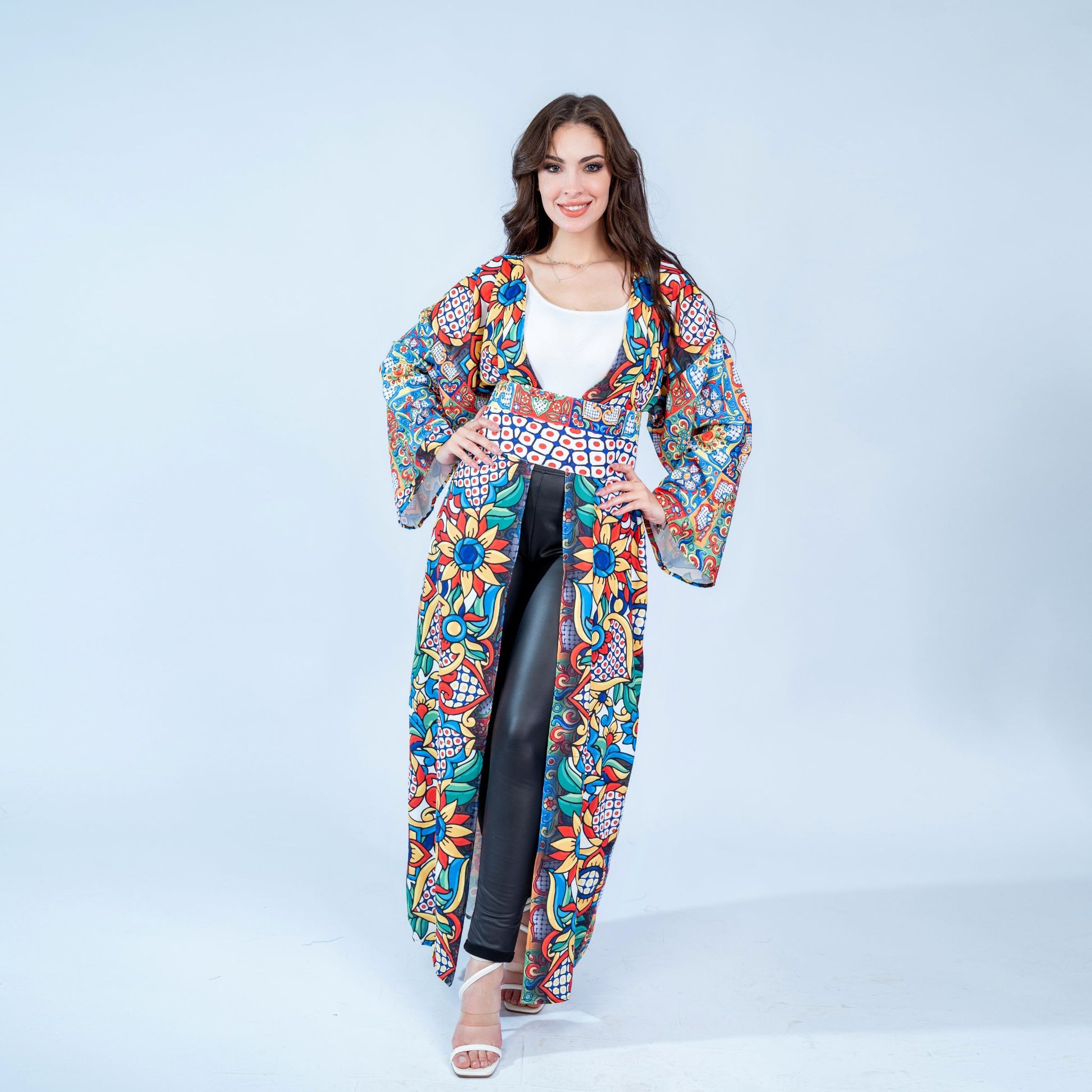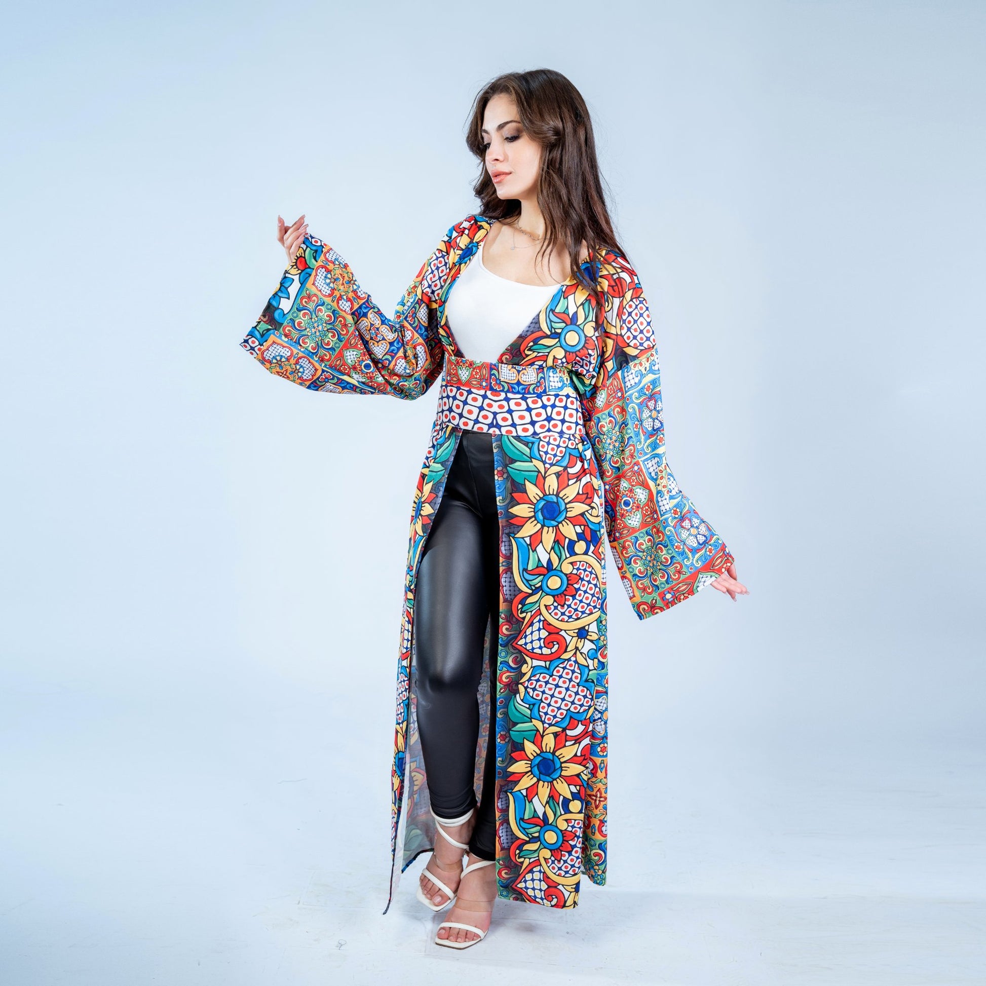Kiss of the Sun is a versatile open kaftan crafted from premium microfiber fabric, offering exceptional comfort and breathability for warm climates. The lightweight material drapes elegantly while maintaining its shape, resisting wrinkles and fading. Designed in a free size fit, this kaftan accommodates various body types with its relaxed silhouette, making it an effortless choice for layering or standalone wear. The microfiber construction ensures easy care and quick-drying properties, perfect for everyday styling or travel. Ideal for those seeking sophisticated, practical elegance.