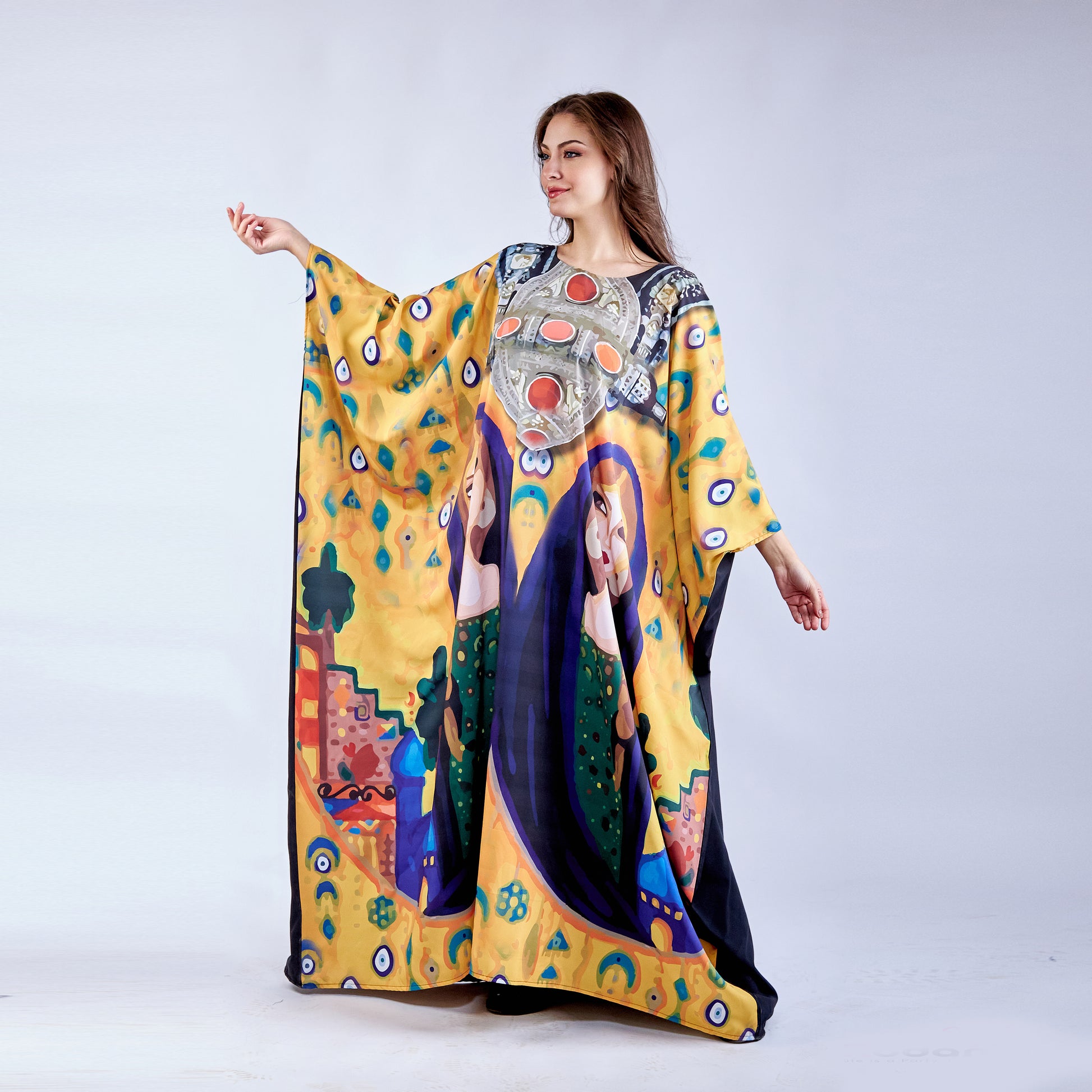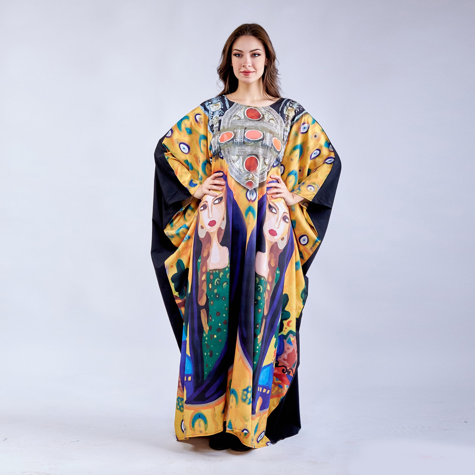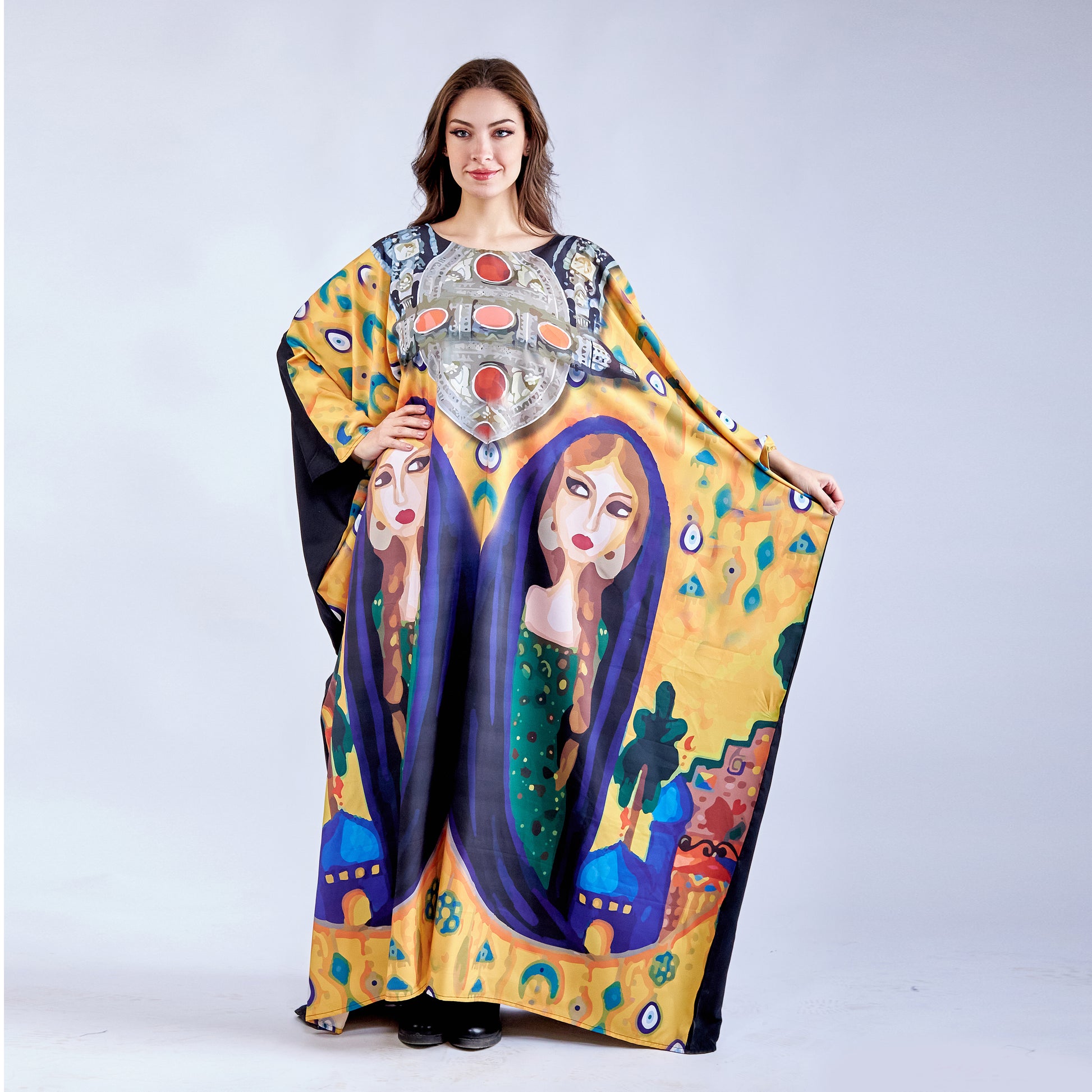 Lady of Sand is a versatile free-size kaftan crafted from premium microfiber fabric, offering exceptional comfort and durability. The lightweight microfiber material provides a soft, smooth feel against the skin while resisting wrinkles and maintaining its shape through regular wear. This flowing silhouette accommodates various body types with ease, making it an effortless choice for everyday elegance. The fabric's moisture-wicking properties ensure breathability in warm climates, while its easy-care nature simplifies maintenance. Perfect for layering or wearing alone, this kaftan delivers timeless style with practical sophistication.