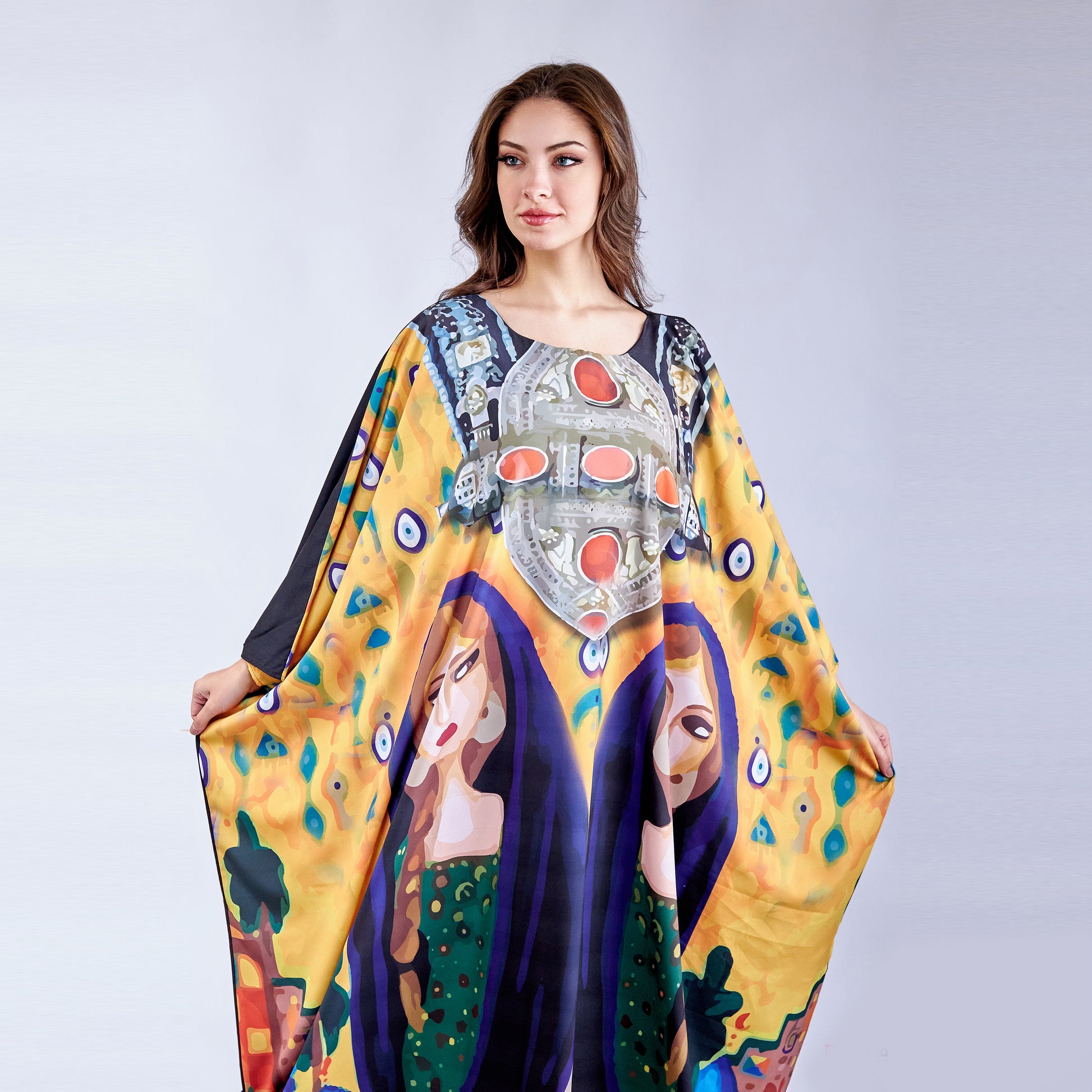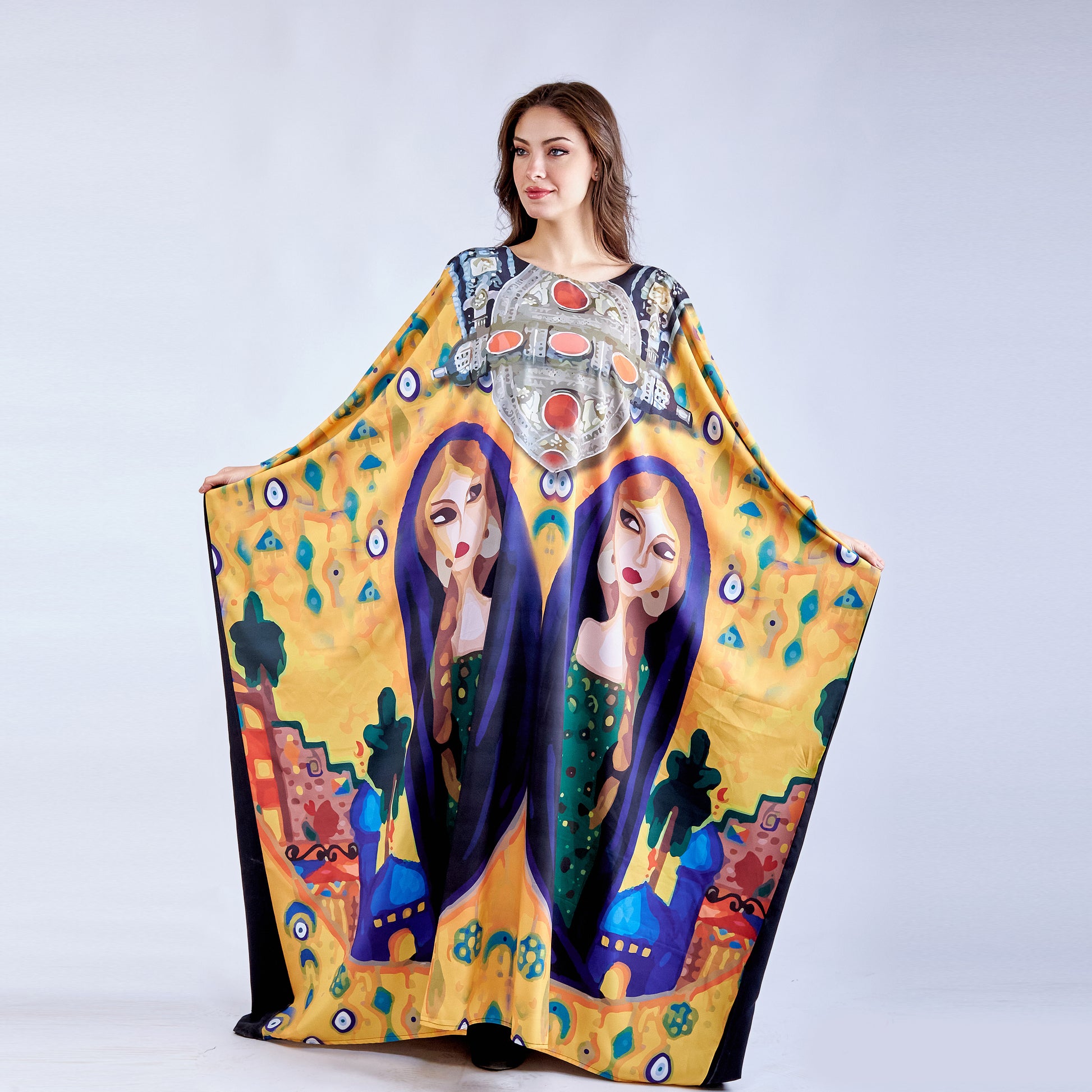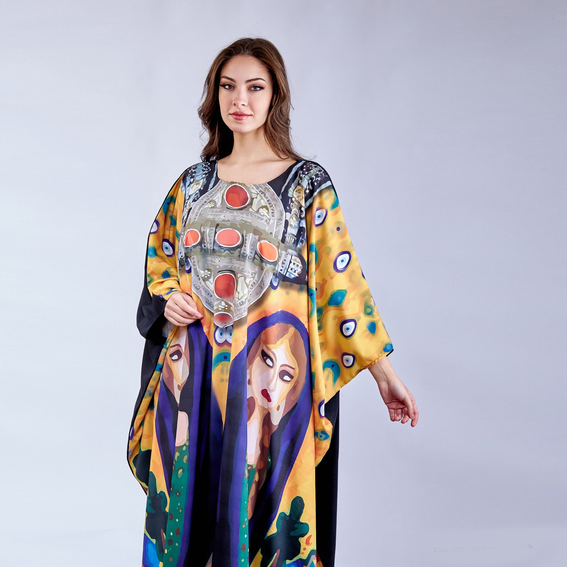 Lady of Sand is a versatile free-size kaftan crafted from premium microfiber fabric, offering exceptional comfort and durability. The lightweight microfiber material provides a soft, smooth feel against the skin while resisting wrinkles and maintaining its shape through regular wear. This flowing silhouette accommodates various body types with ease, making it an effortless choice for everyday elegance. The fabric's moisture-wicking properties ensure breathability in warm climates, while its easy-care nature simplifies maintenance. Perfect for layering or wearing alone, this kaftan delivers timeless style with practical sophistication.