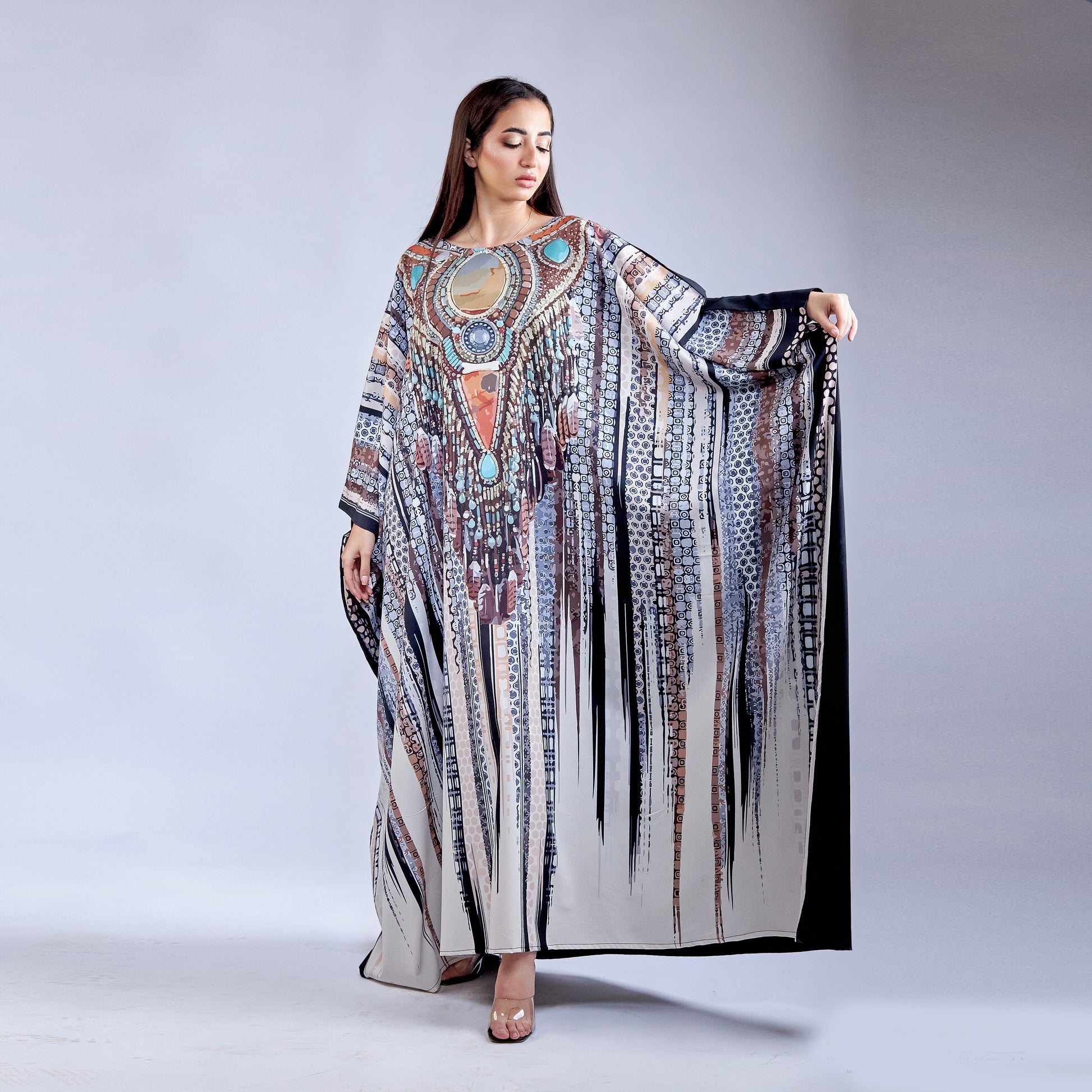Sahara Sunset Kaftan Crafted from premium microfiber fabric, this free-size kaftan delivers exceptional comfort and versatility for any occasion. The lightweight, breathable material drapes elegantly while resisting wrinkles and fading, making it ideal for both everyday wear and special events. The generous free-size fit accommodates various body types, ensuring a flattering silhouette. Microfiber's moisture-wicking properties keep you cool and fresh throughout the day, while its durability means this piece will remain a wardrobe staple for years. Perfect for layering or wearing solo, this kaftan combines practical sophistication with timeless style.
