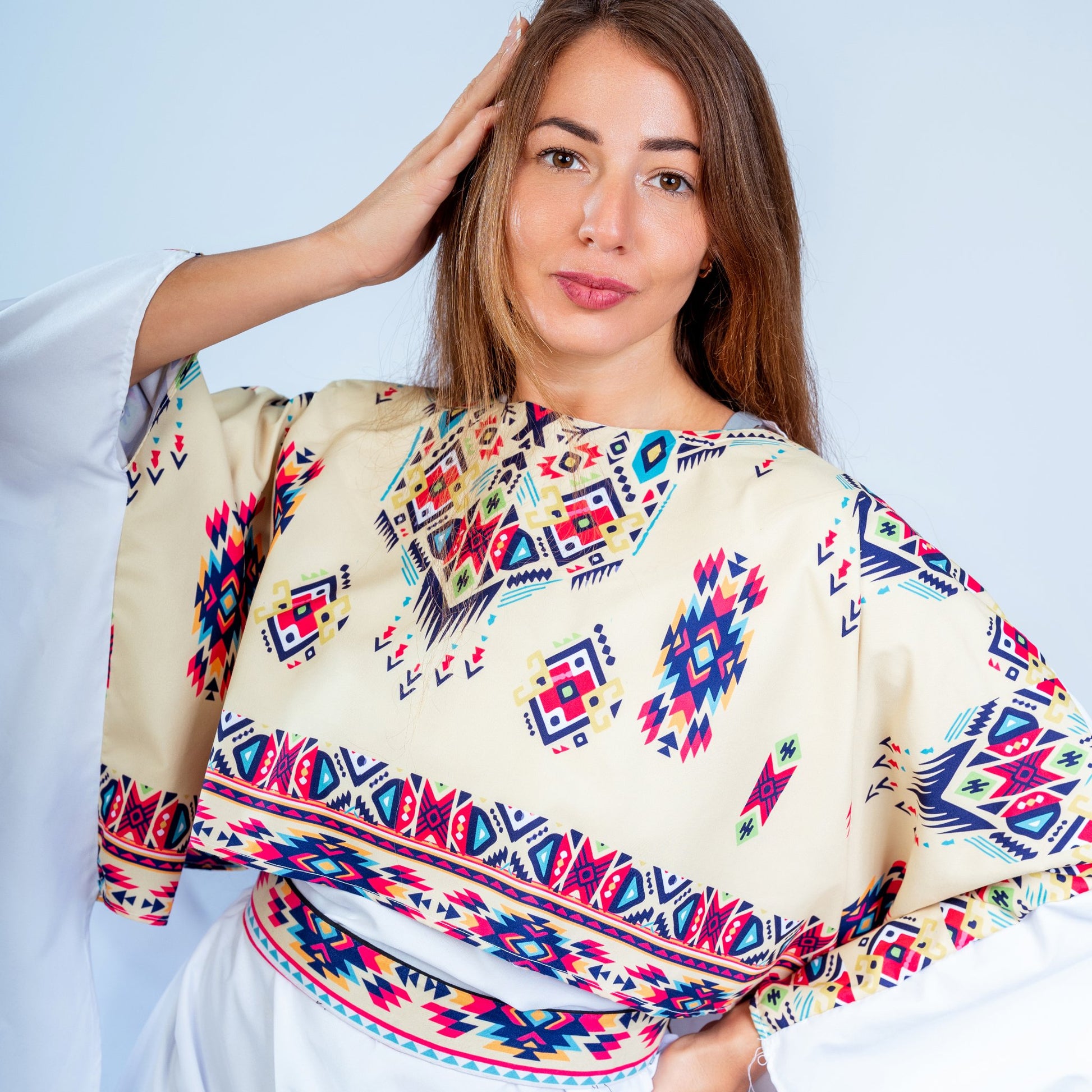 Silk Whispers Microfiber Crop Kaftan Crafted from premium microfiber fabric, this crop kaftan delivers exceptional softness and breathability for all-day comfort. The lightweight material drapes beautifully while maintaining its shape, making it an ideal choice for warm climates and layered styling. Available in a free size that accommodates various body types, this versatile piece transitions seamlessly from casual daywear to evening occasions. The microfiber construction resists wrinkles and requires minimal maintenance, ensuring effortless elegance. Perfect for those seeking a refined, comfortable garment that combines practicality with contemporary style.