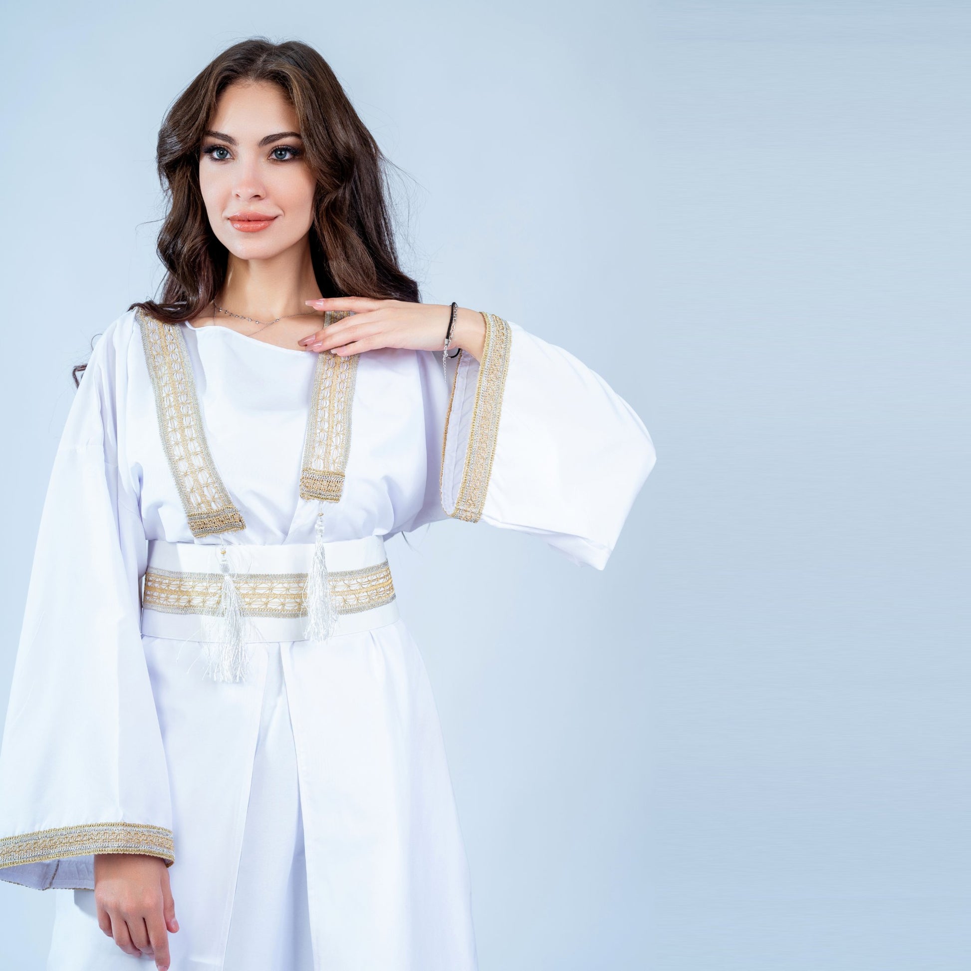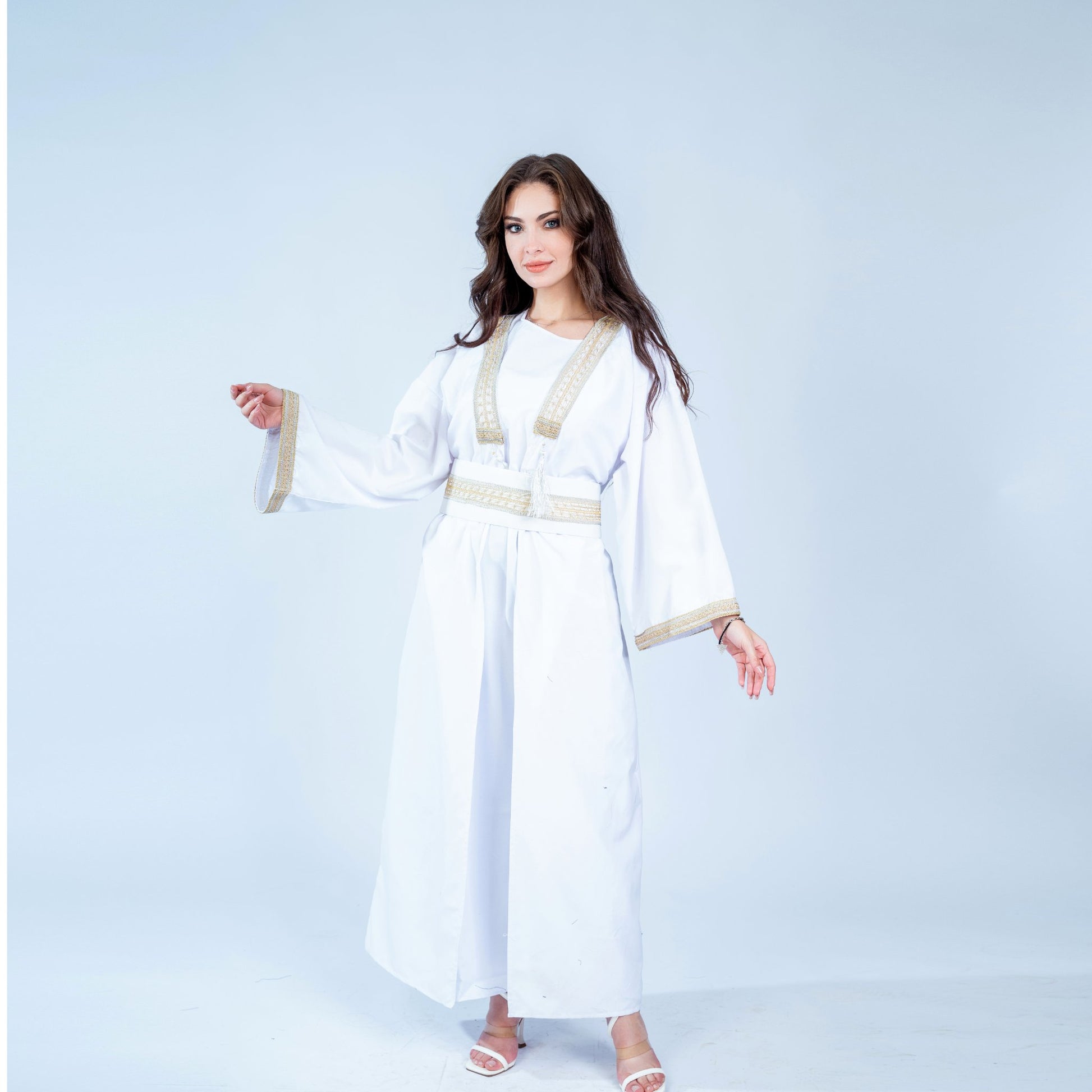 White Pearls is a versatile open kaftan crafted from premium microfiber fabric, offering exceptional comfort and elegance. The lightweight, breathable material drapes beautifully while maintaining its shape, making it ideal for warm climates and layered styling. Available in a free size that accommodates various body types, this piece transitions effortlessly from casual daywear to evening occasions. The microfiber construction ensures easy care and durability, resisting wrinkles and fading. Perfect for those seeking sophisticated, practical fashion that doesn't compromise on style or comfort.