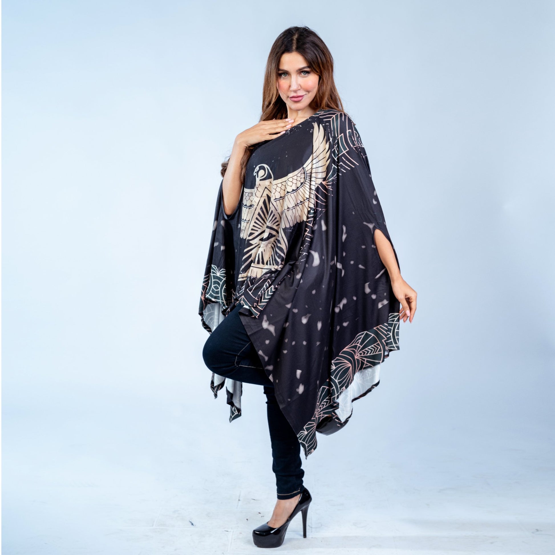Winged Majesty Microfiber Poncho Crafted from premium microfiber fabric, this versatile poncho delivers exceptional softness and durability. The free-size design adapts effortlessly to different body types, providing comfortable coverage for any occasion. Microfiber's moisture-wicking properties keep you dry and comfortable throughout the day, while its lightweight construction makes it ideal for layering or standalone wear. Easy to care for and quick-drying, this poncho combines practical functionality with elegant styling. Perfect for transitional seasons or casual everyday wear.