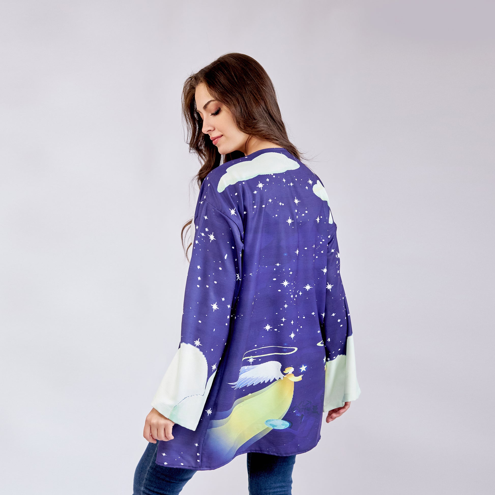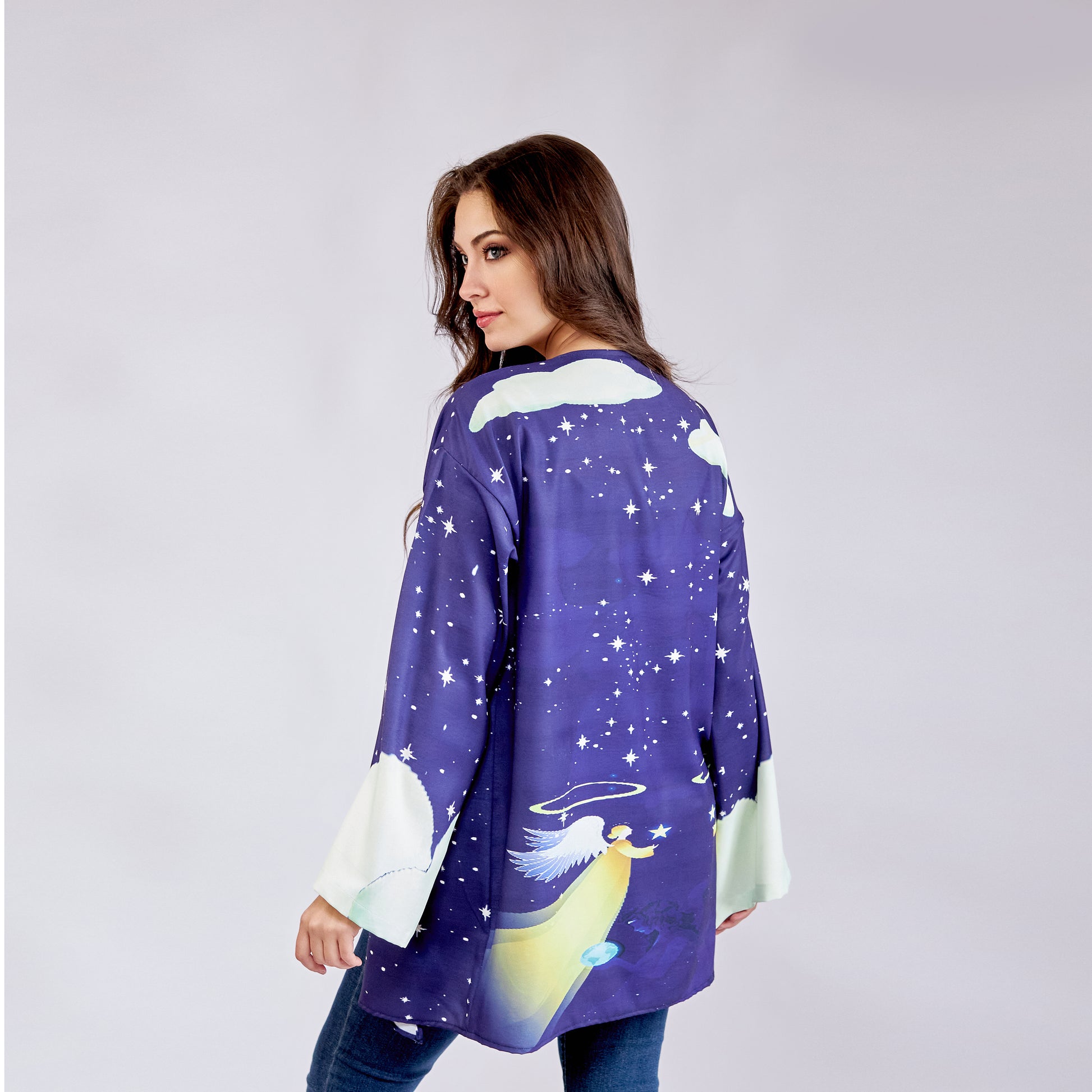 Wings of Grace Short Cardigan combines premium microfiber fabric with versatile free-size styling for effortless layering. The lightweight microfiber material offers exceptional softness and durability, resisting wrinkles and maintaining its shape through regular wear. Its structured yet comfortable fit adapts to various body types, making it an essential piece for transitional seasons. Perfect for layering over dresses or pairing with casual basics, this cardigan delivers both sophistication and practicality. The microfiber construction ensures easy care and long-lasting quality, while the short length provides modern proportions that complement contemporary wardrobes.